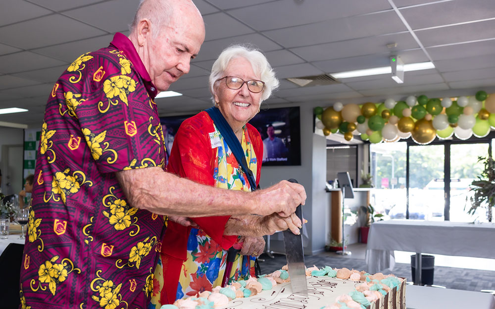 Ian Schofield and Life member Mary Griffiths had the honour of cutting the centenary cake. Both became members in 1974 and 1948 respectively. An armchair chat with Jen Spilsbury heard Mary and Ian reminisce about their fondest memories of the club.